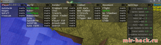 Обновленный чит для игры minecraft 1.8.7, в чите очень много хороших функций, чит работает в игре его тестировали!.