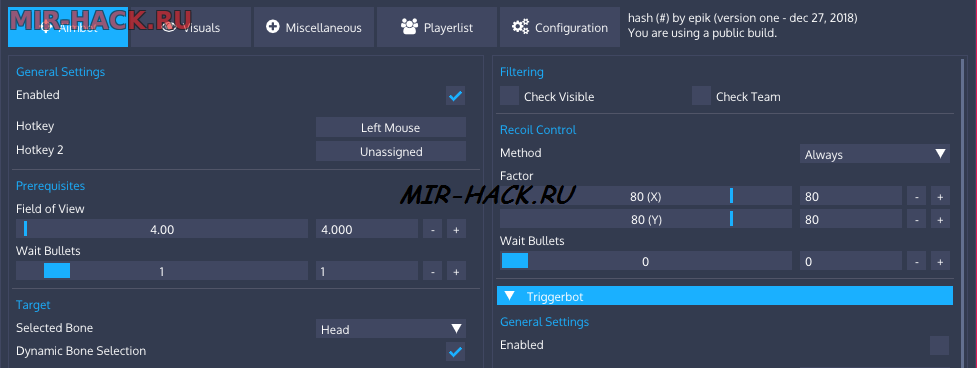 Бесплатный чит Public для игры CS:GO от 28.12.18