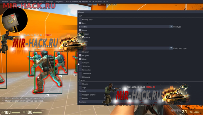 Новый чит FakeDownBoy$ для Counter-Strike Global Offensive, в чите новый приятный интерфейс меню, сделан довольно оригинально и ничего не мешается. Чит FakeDownBoyS мощный, в нем много различных функций, ну особенные функции это hvh, так-же есть aimbot, esp, телепорт и многое другое. С этим читом можно закрашить сервер, в меню есть две функции в разделе MISC найдете: Server Crasher и Server Crasher Key. В этот чит были добавлены новые функции с которыми вы будете неуязвимы в игре cs:go.