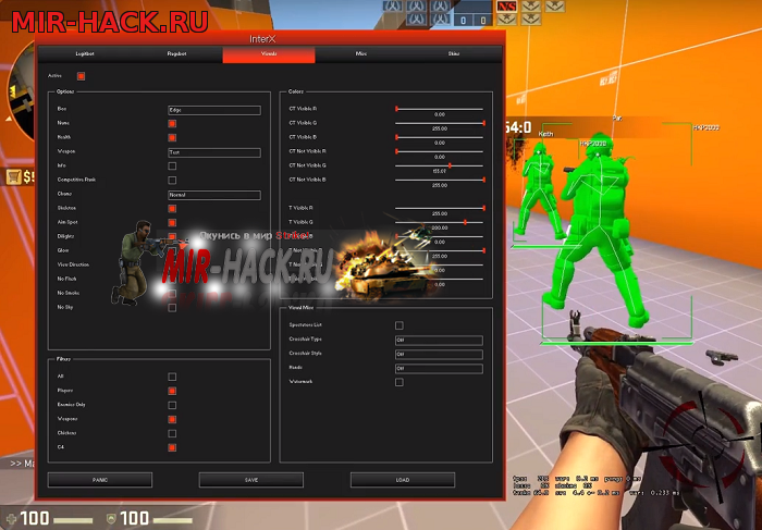 Новенький чит InterX Hack с многочисленными функциями. По моему мнению это самый хороший чит для игры Counter-Strike Global Offensive, мне лично понравилась его настройка и доступность включение той или иной функции. В чите есть и Aimbot, TriggerBot, LegitBot, RageBot - это самые мясные функции в чите InterX. В Visuals отличная настройка ESP, очень понравились цвета скинов которые можно изменять прямо в игре в самом меню чита.