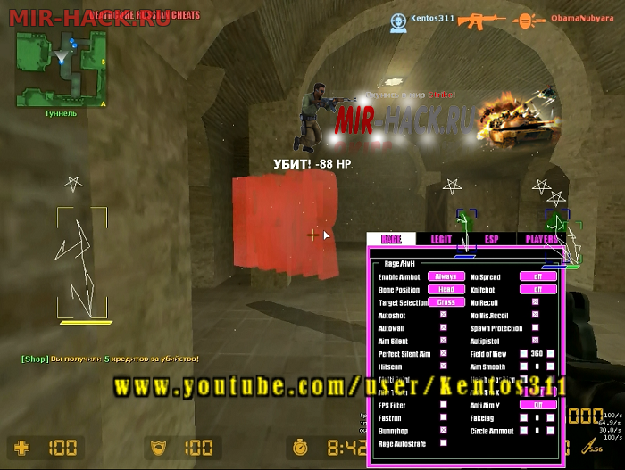 С этим читом можно разнести весь сервер, и игроки уйдут не дав вам сдачи. Чит очень мощный, и главное что работает на css v88, в нем имеется aim, esp, bhop, и т.д
