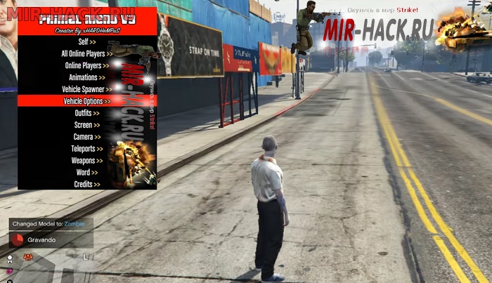 Особенность этого чита заключается в том что он обновлен до последний версии, имеет множество различных функций. Есть возможно добавить себе оружие любые, сделать респаун любой машины, в том числе танков, вертолетов и много другой технике. Есть возможность использовать телепорт, вы сможете перемещаться из одной точки в другую. Также можно дополнительно включить speedhack вы будете быстро бегать, или быстро ездить на машине. В меню присутствует изменение погоды, можно добавить легкий пушистый снег либо изменить время и многое другое. Через этот чит можно изменить цвет вашего оружия в игре, также можно изменять своё тело в игре, можно убрать руки, ноги и так далее. На карте можно поставить любой предмет например летающие тарелку, камни, корабли. Добавлено возможность тюнинга машины в любом месте, вы сможете изменить цвет машины, поставить красивые диски, прокачать её по полной. Ну и главное в этом чите это конечно же бессмертие, вас не смогут убить копы и вы даже сами себя не сможете убить в игре. В управлении читом доступно функция кикнуть всех кто находится за рулем.