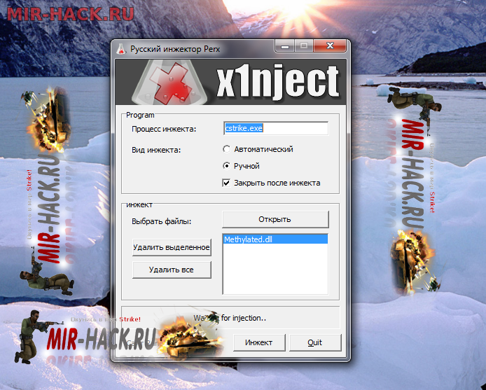 Инструкцию писать нету смысла, игра у вас должна быть всегда запущена, а потом только инжектить чит. Также если ничего не происходит, то означает то что вы указали неверный процесс игры, иногда бывает hl.exe а иногда cstrike.exe, зависит от вашей сборки.