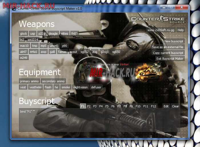 С помощью этой программой вы сможете установить закупку оружий на определенную кнопку в игре Counter-Strike Source.