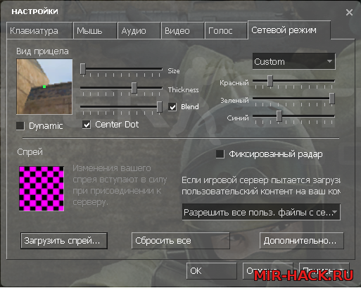 | Настройки прицела (CS:S). Ставьте себе такие прицелы. 1. Размер прицела: cl_crosshairscale 40000 (Самый маленький прицел) cl_crosshairscale 20000 (Очень маленький прицел) cl_crosshairscale 5000 (Динамичный маленький прицел) cl_crosshairscale 2000 (Средний прицел) 2. Динамика (расширение прицела в игру, при ходьбе и т.п.) cl_dynamiccrosshair 0 - Убираем расширение cl_dynamiccrosshair 0 - Оставляем расширение (дефолт) 3. Цвета прицела: cl_crosshaircolor 3 - число от 1 до 5 даёт разные цвета, точные цвета не помню.. |